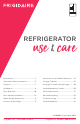 REFRIGERATOR use & care Introduction........................................................2 Automatic Ice and Water Dispenser...... 22 Important Safety Information.....................3 Storage Features........................................... 25 Features...............................................................7 Storing Food and Saving Energy............ 29 Installation..........................................................8 Normal Operating Sounds.........................