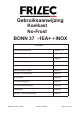 Gebruiksaanwijzing Koelkast No-Frost BONN 370-1EA++ INOX Inhoud Veiligheidsvoorschriften Pagina 2 - 12 Plaatsing apparaat Pagina 13 Omschrijving apparaat Pagina 14 Werking en dagelijks gebruik Pagina 15 - 24 Wijzigen deurscharnier Pagina 24 - 31 Geluiden tijdens werking Pagina 32 Storingen en oplossingen Pagina 33 Servicedienst Pagina 34 Technische gegevens Pagina 35 CE-conformiteitsverklaring Pagina 35 Productblad Pagina 36 Garantie- en servicebepalingen Pagina 37 BONN 370-1EA++ IN