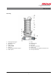 Basic structure 1 Basic structure Dry sieving 1 2 3 4 5 6 7 Clamping nut with grips Transparent screen Machine lid Rubber bumper Test sieve stack Guide rod Oscillating solenoid with armature 8 9 10 11 12 13 14 -6- Rubber profile Base Rubber bumper Flat spring Base plate Separate control device Rubber rings