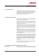 Exclusion of liability 10 Exclusion of liability Before using the product, be sure to have read and understood this operating manual. The use of the product requires technical knowledge; only commercial use is permitted. The product may be used exclusively within the scope of applications set down in this operating manual and within the framework of guidelines put forth in this operating manual and must be subject to regular maintenance.