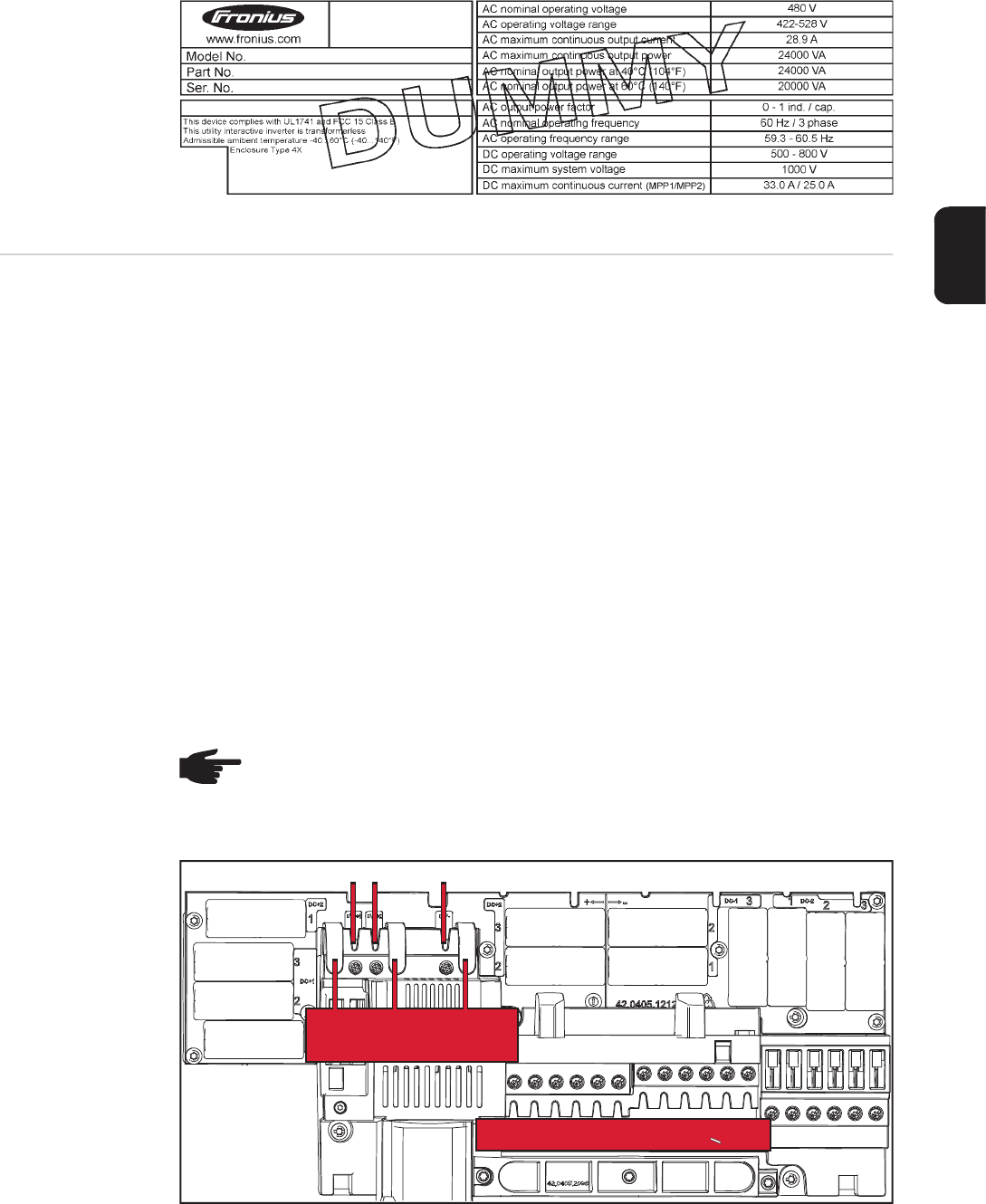 Valable uniquement pour les types d'appareils Fronius Symo 15.0-3 208 et Fronius