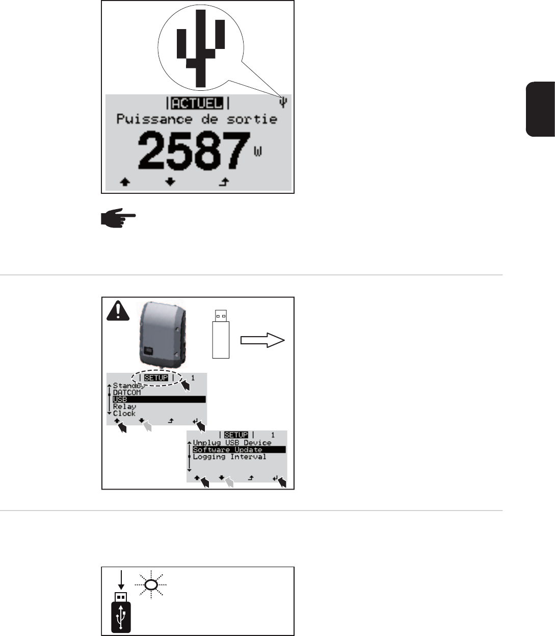 Symbole USB sur l'écran de l'onduleur, par ex. en mode d'affichage « ACTUEL » :