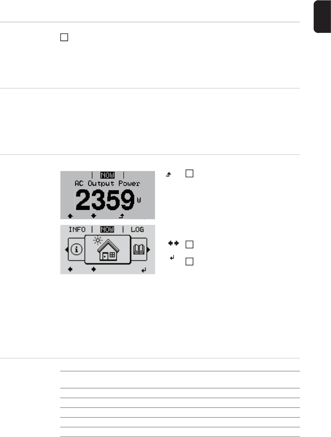 - the inverter can be switched to the "NOW" display mode from any menu level, except