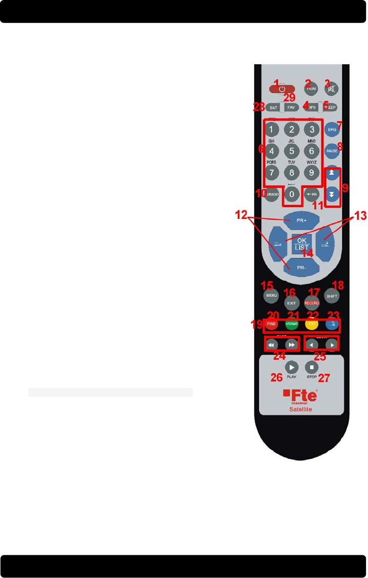12. PR+/PR-:Zum Umschalten der Programme +1 / -1 Programm. In