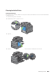Grasp the handle on the waste toner box and pull it out making sure to hold it upright so that the waste toner does