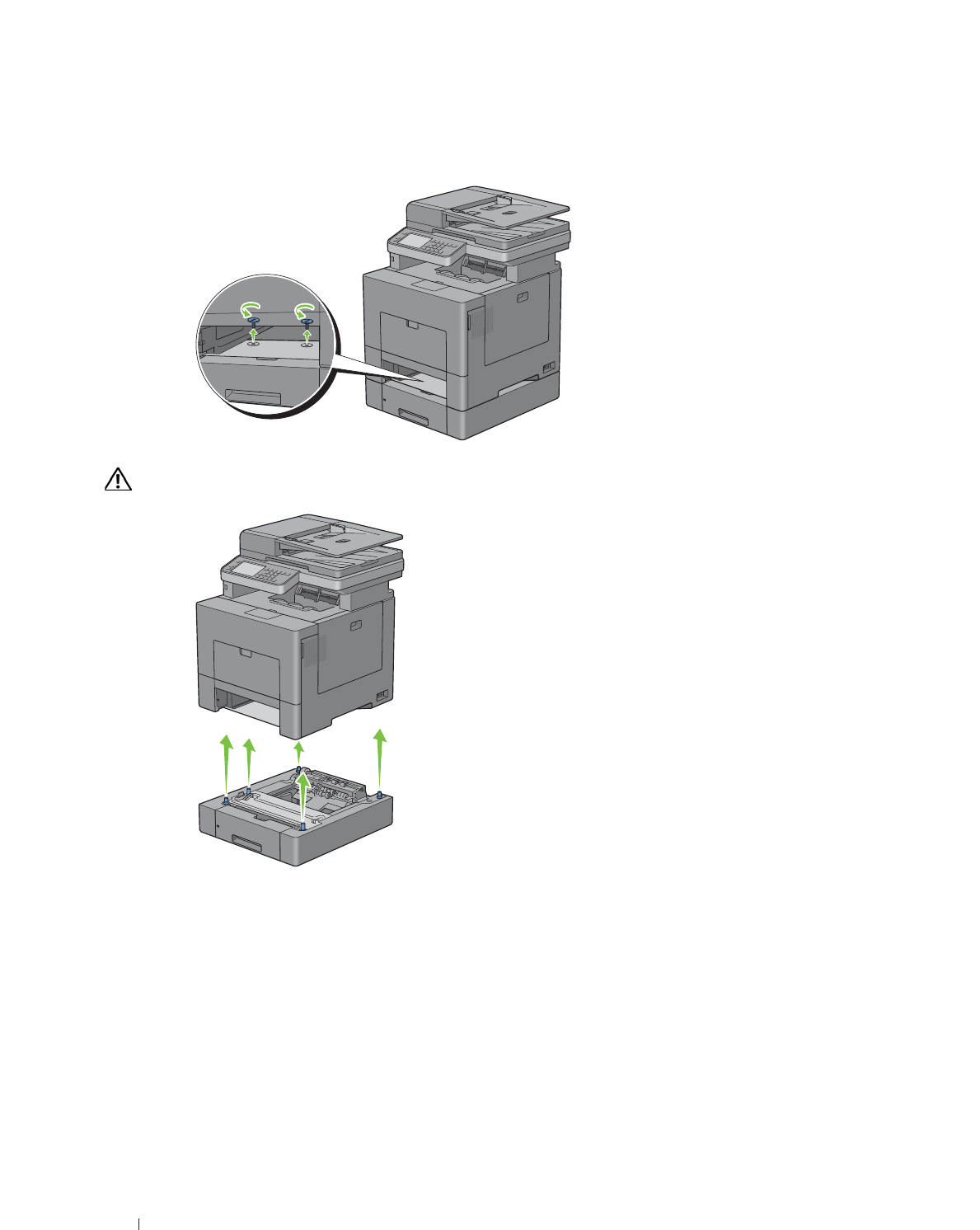 Remove the two screws joining the printer and the optional 550-sheet feeder by unscrewing them with a coin or