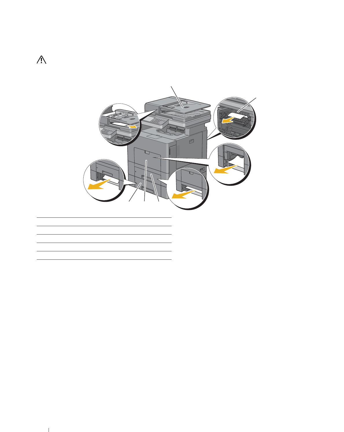WARNING: Do not attempt to clear any jams using tools or instruments. This may permanently damage the printer.