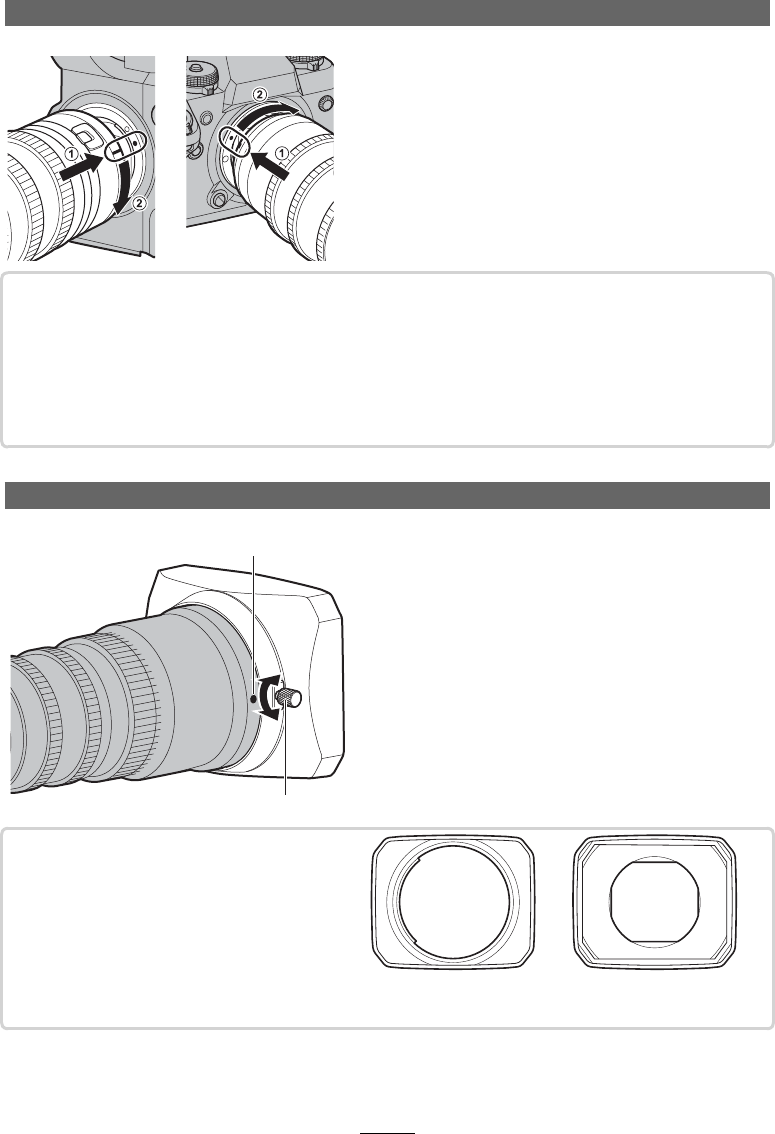 • When attaching lenses, ensure that dust or other foreign matter does not enter the camera.