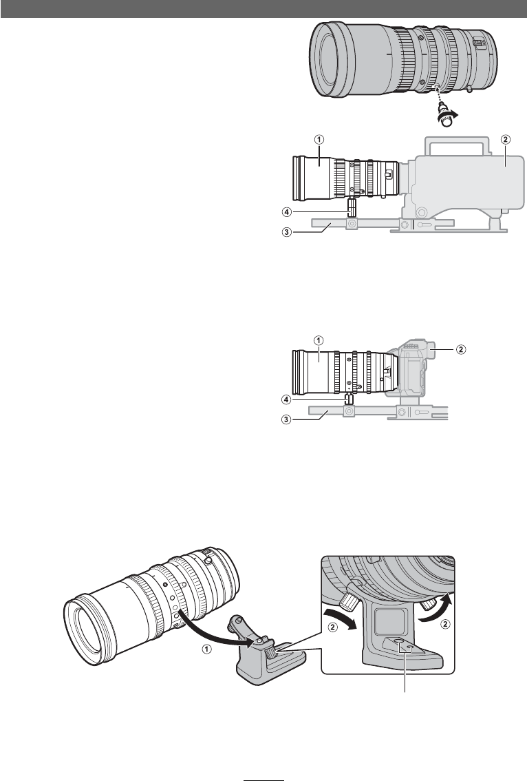 Richten Sie den Stift am Stativmanschettenfuß mit dem Stativfuß-Montagepositionsindex am Objek-