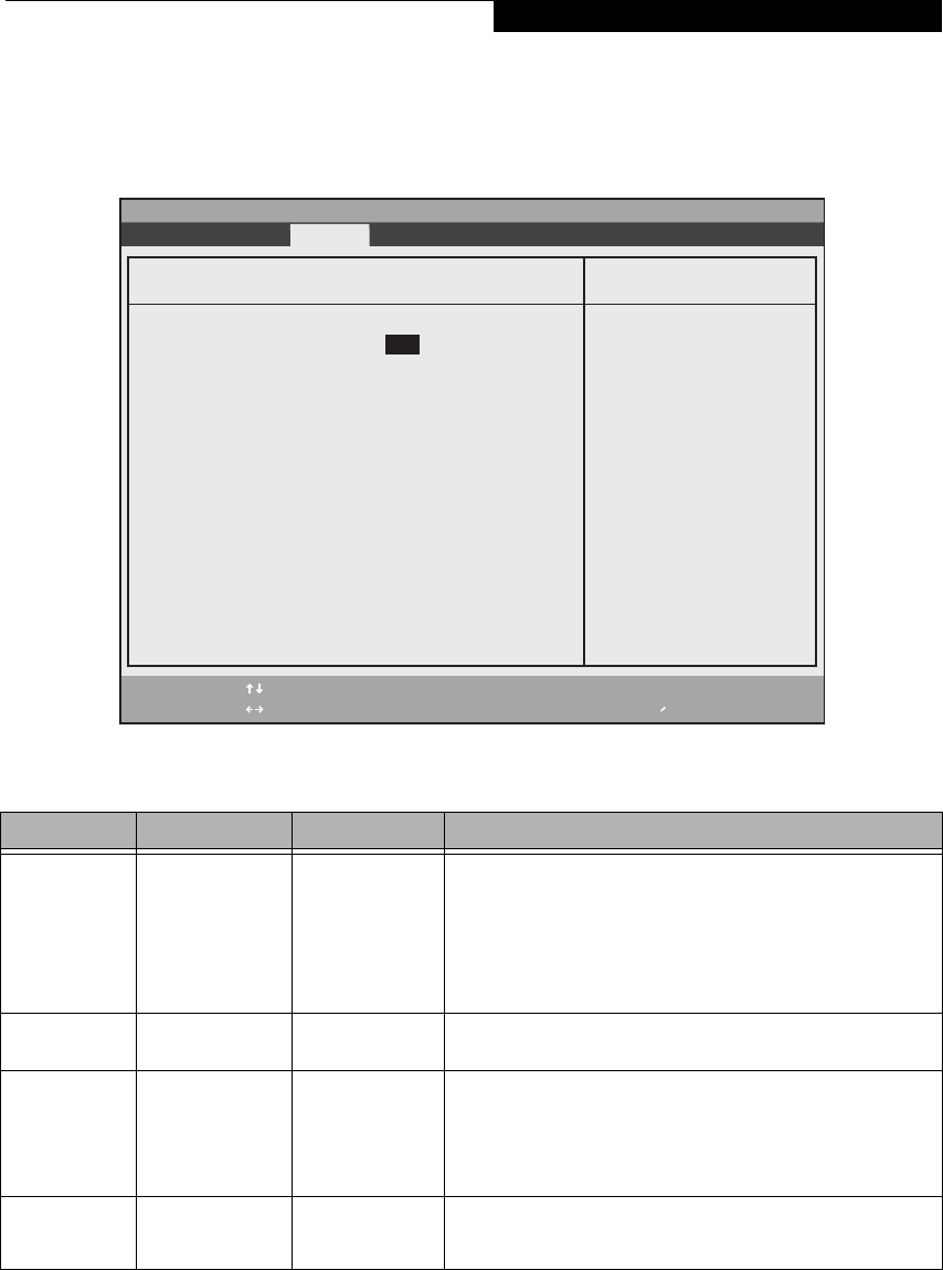 Table 7: Fields, Options and Defaults for the Keyboard/Mouse Submenu of the Advanced Menu