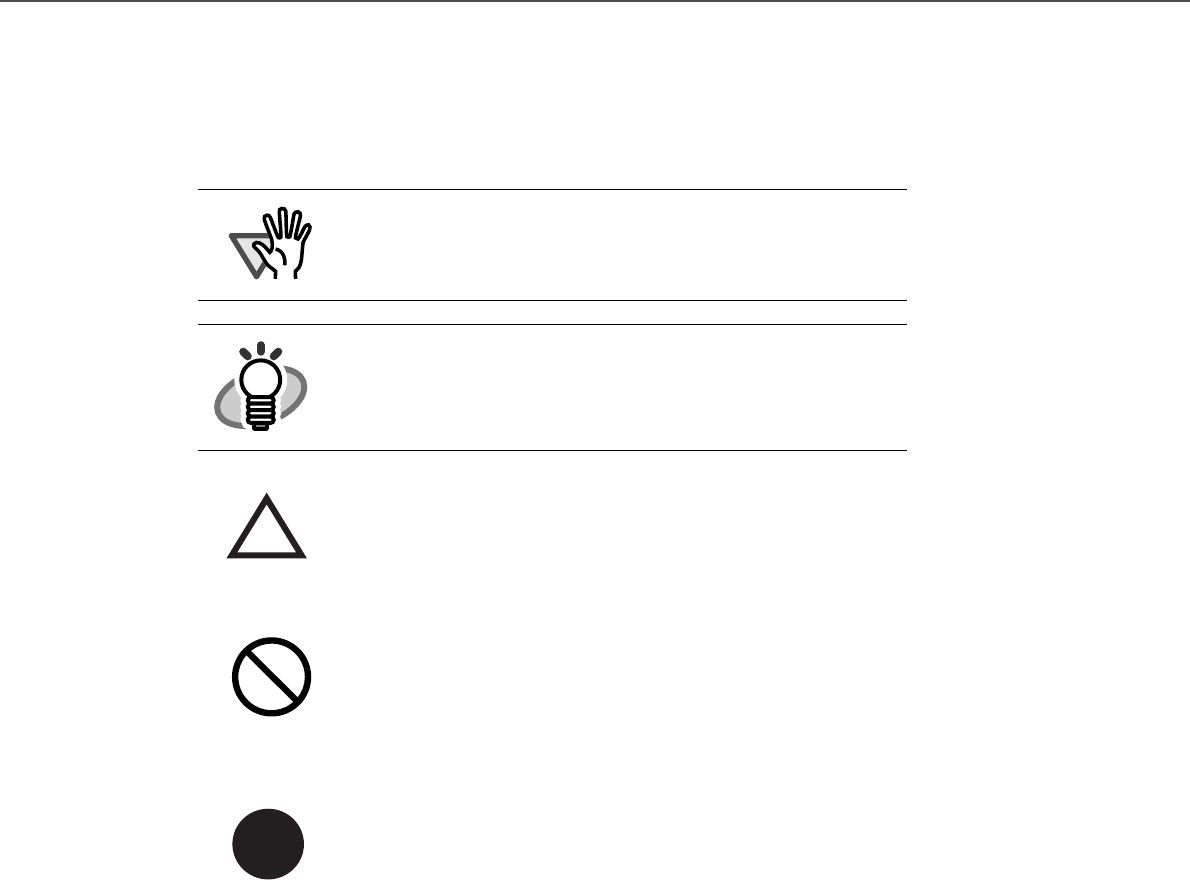 This manual uses the following symbols in explanations in addition to warning