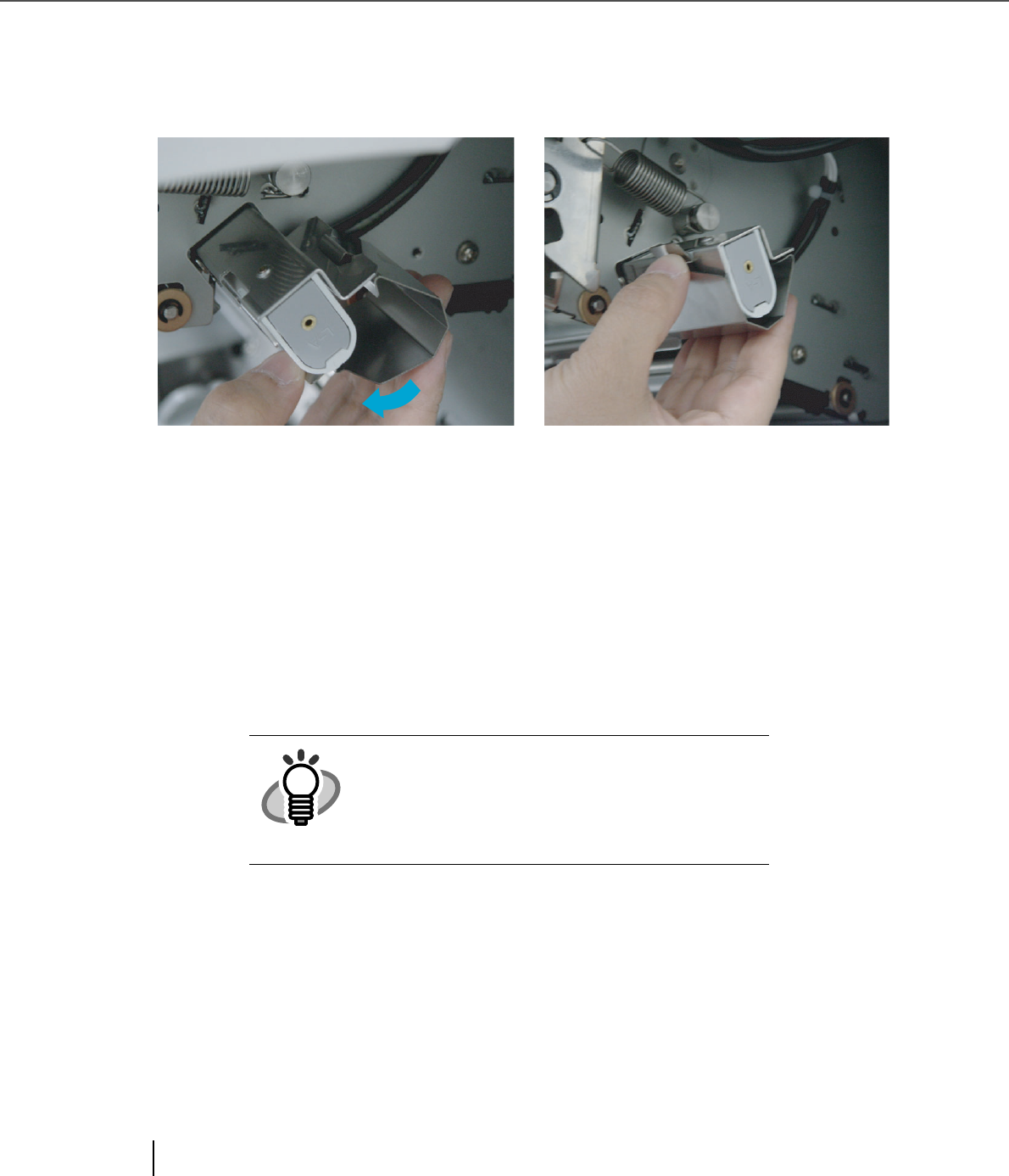 8. Lift the Upper transport unit a little to release the safety lock and then lower the