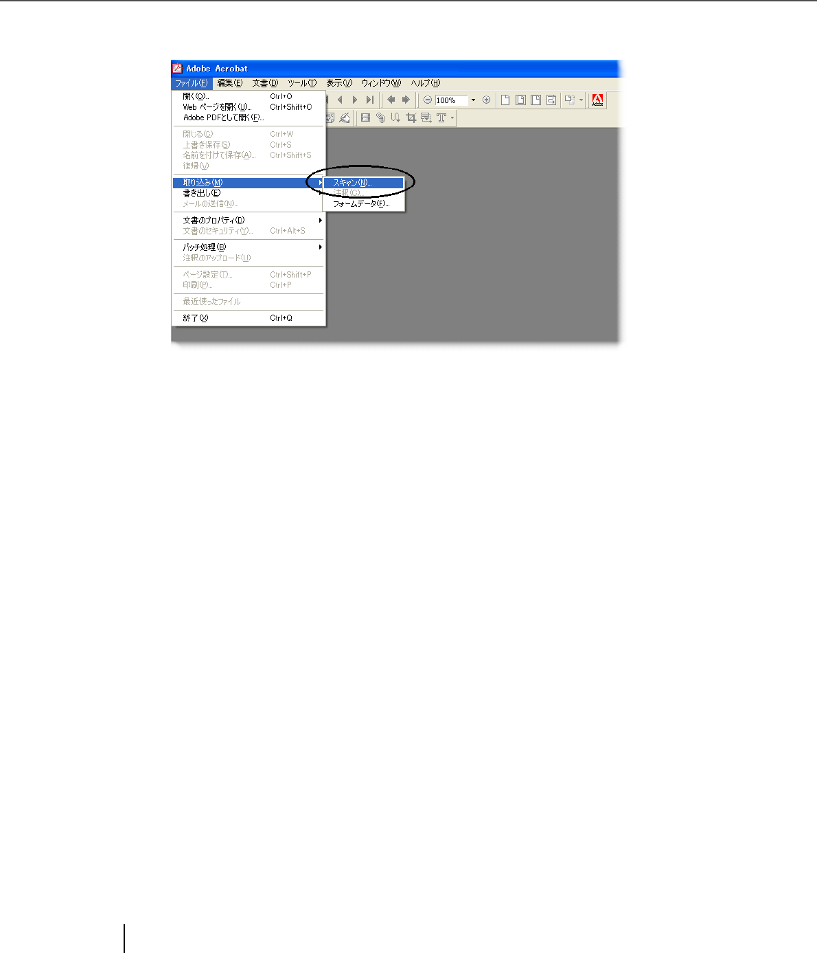 3. Select [Import] - [Scan] in that order from the [File] menu.