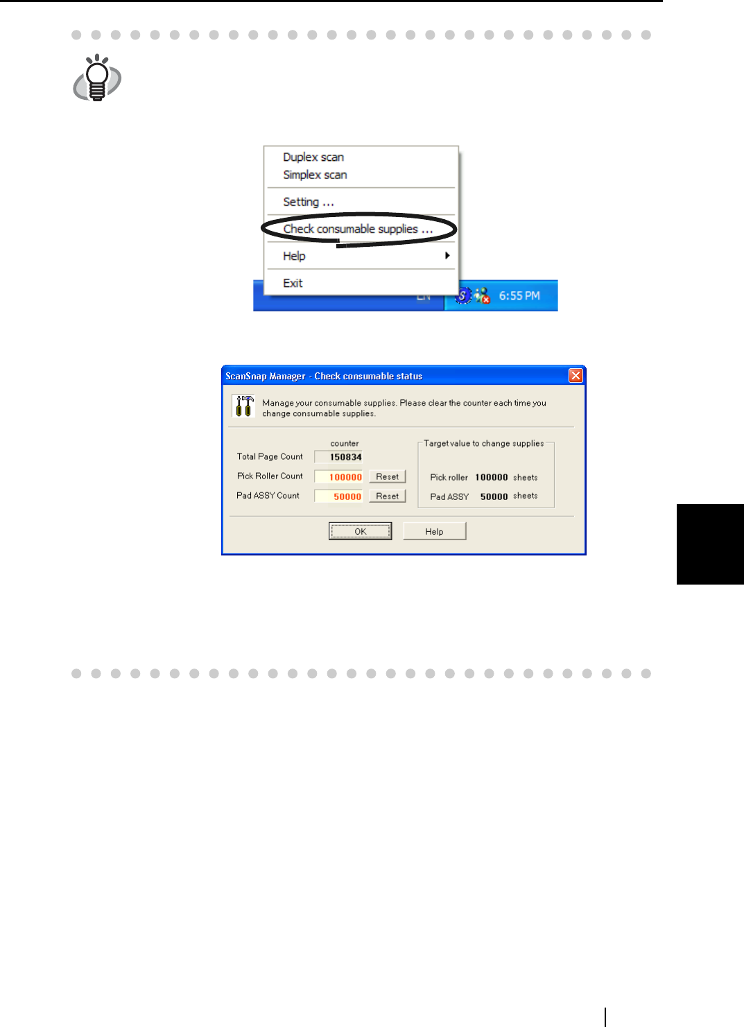 ⇒ The screen ("Check consumable status" screen) is displayed. This screen