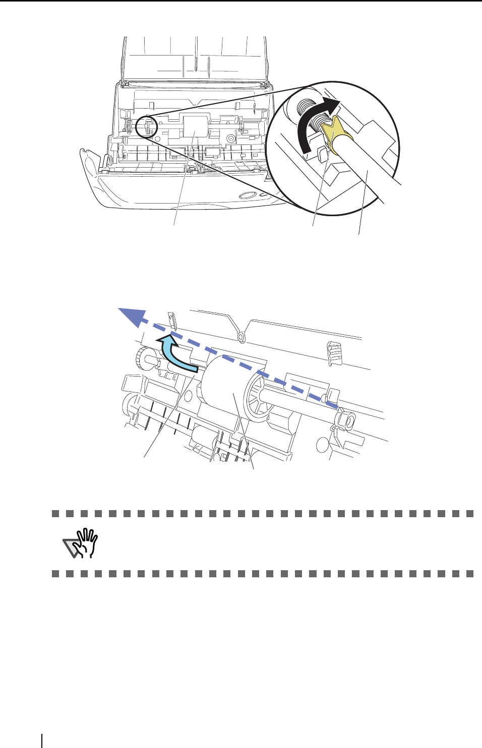 Hold the left part of the shaft, and raise it to remove the shaft from the scanner while pulling