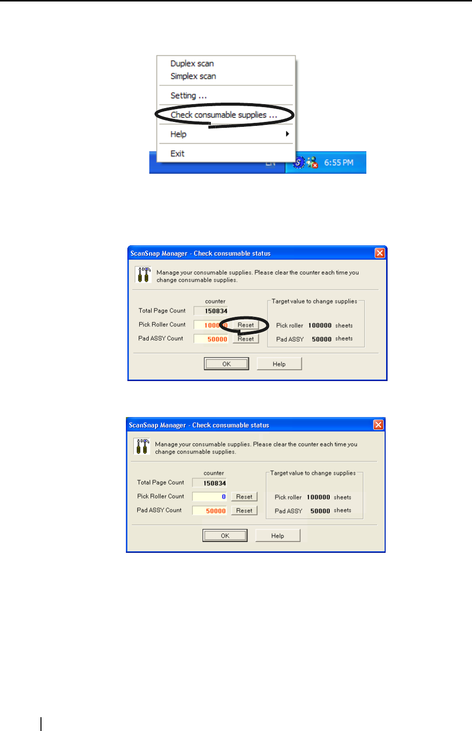 13. Right click the "ScanSnap Manager" icon in the task tray, and select [Check consum-