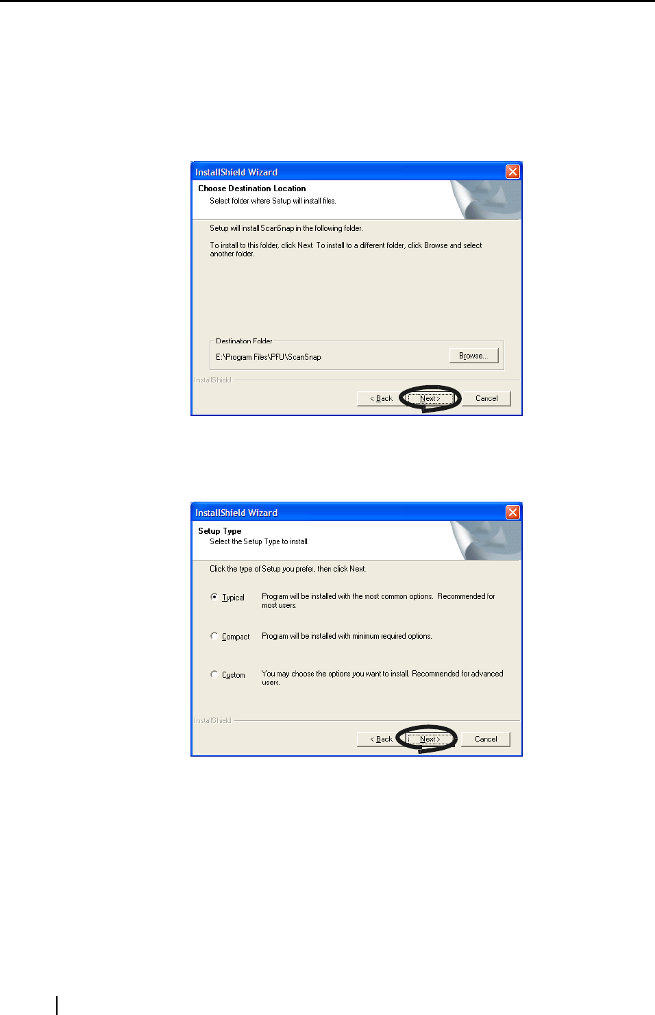 To install ScanSnap in the displayed folder, click the [Next] button.