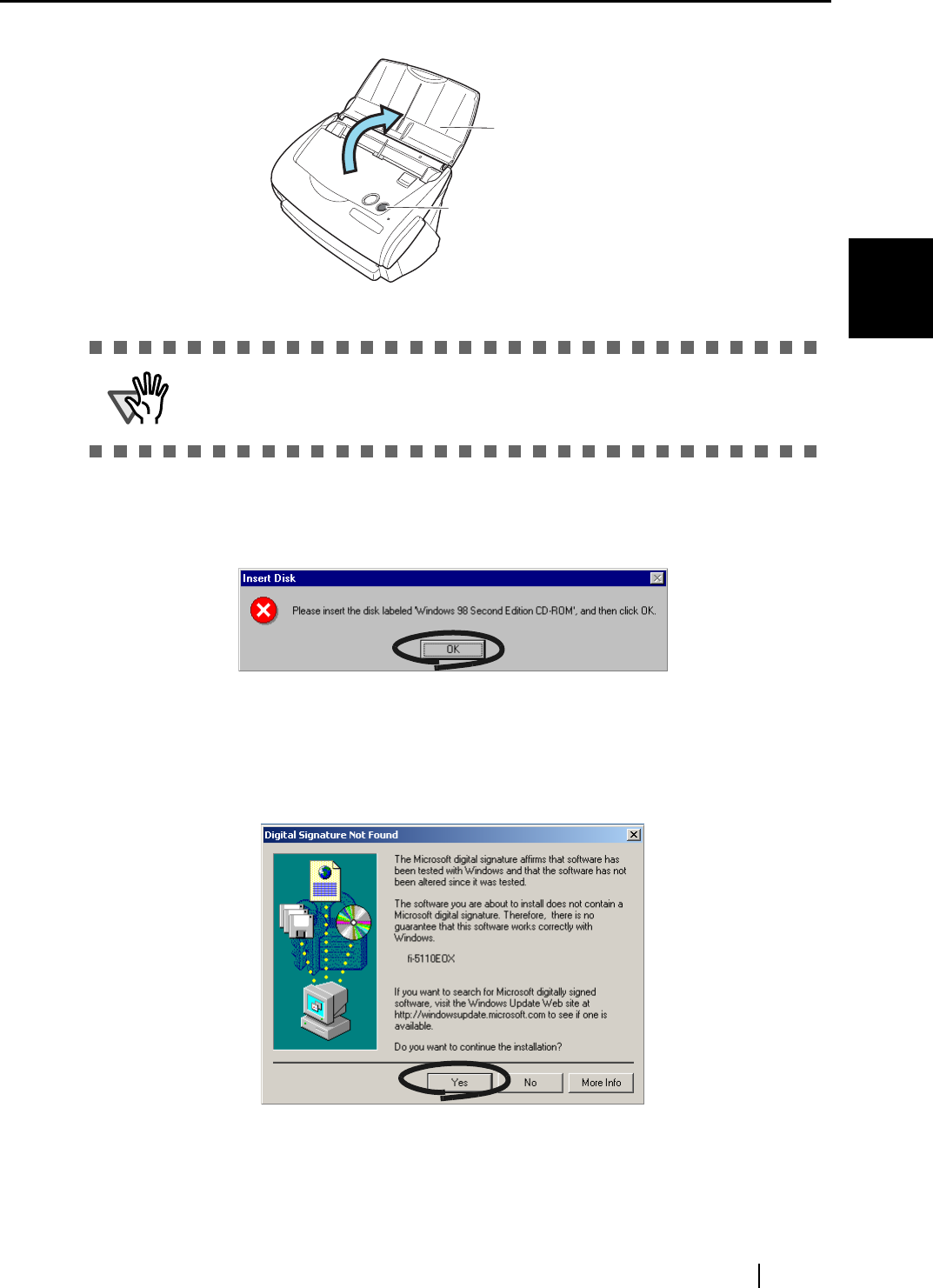 Insert the Windows 98 CD-ROM into the CD-ROM drive, and click the [OK] button.