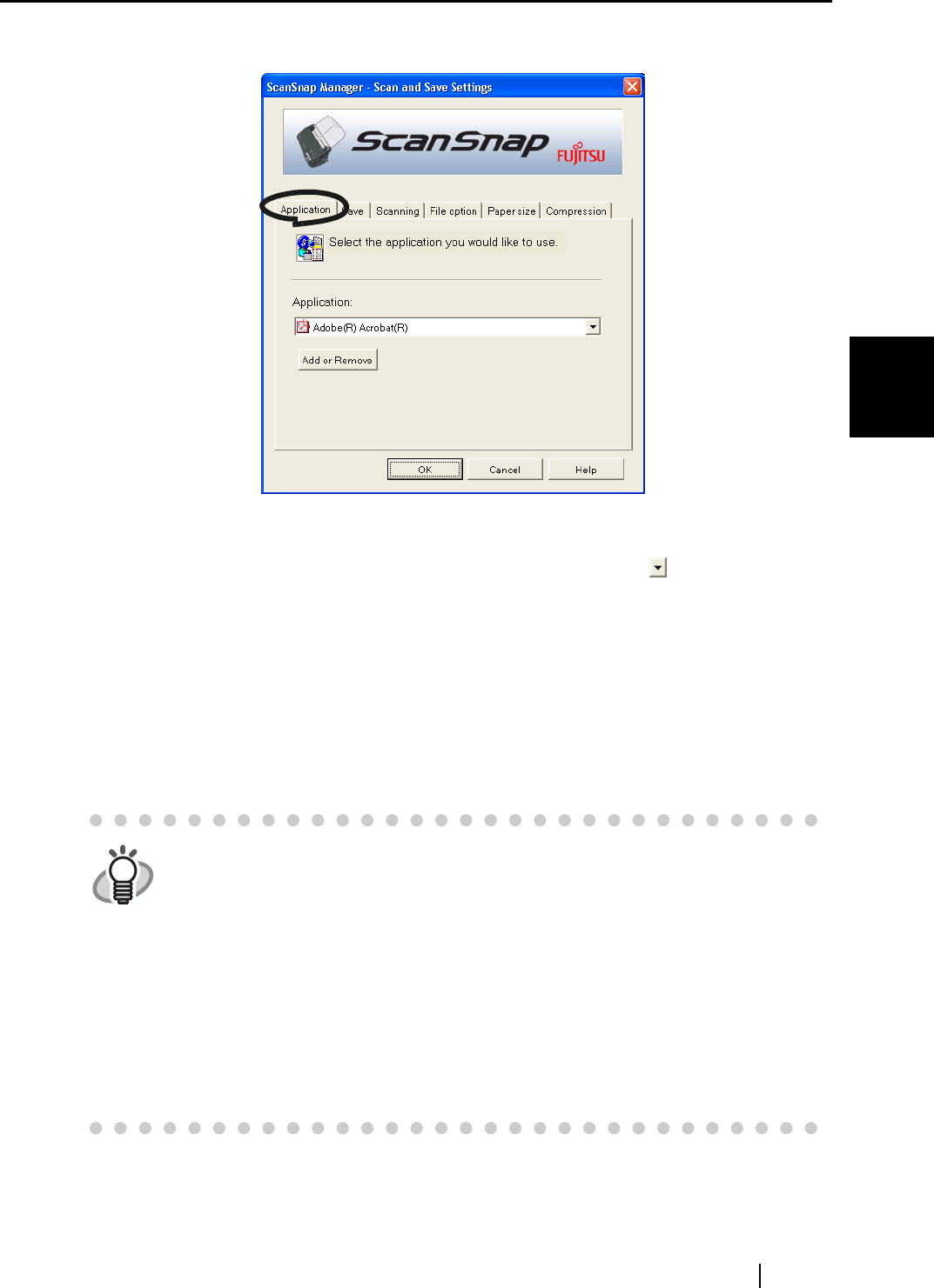 is started up after the document is scanned on ScanSnap. Click to select the applica-
