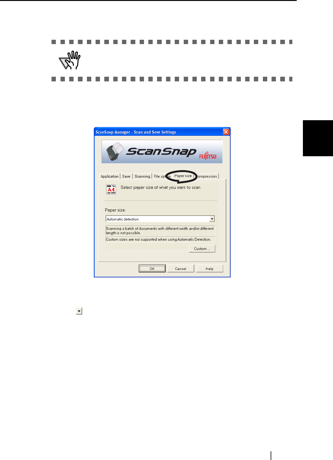 Specify the size of the document to be loaded on the scanner.