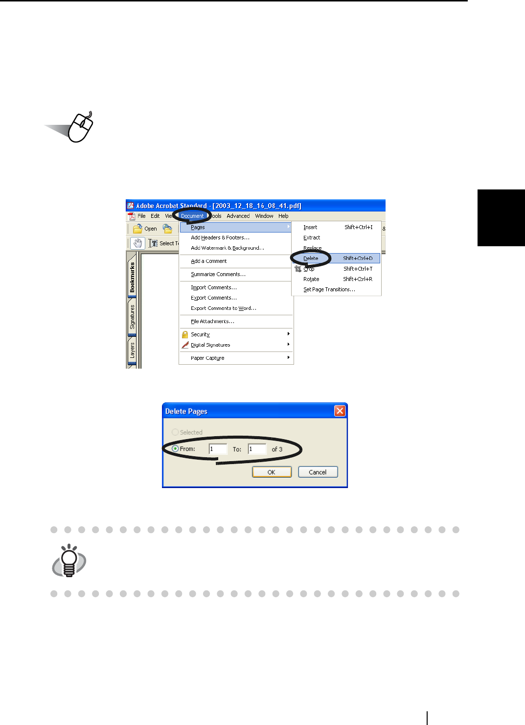 Unnecessary pages of a document which has been scanned and saved as PDF files can be deleted