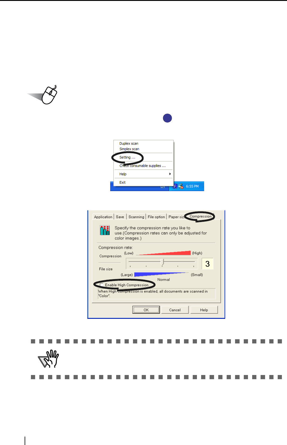 In addition to the ordinary compression function, ScanSnap features the "High Compression" func-