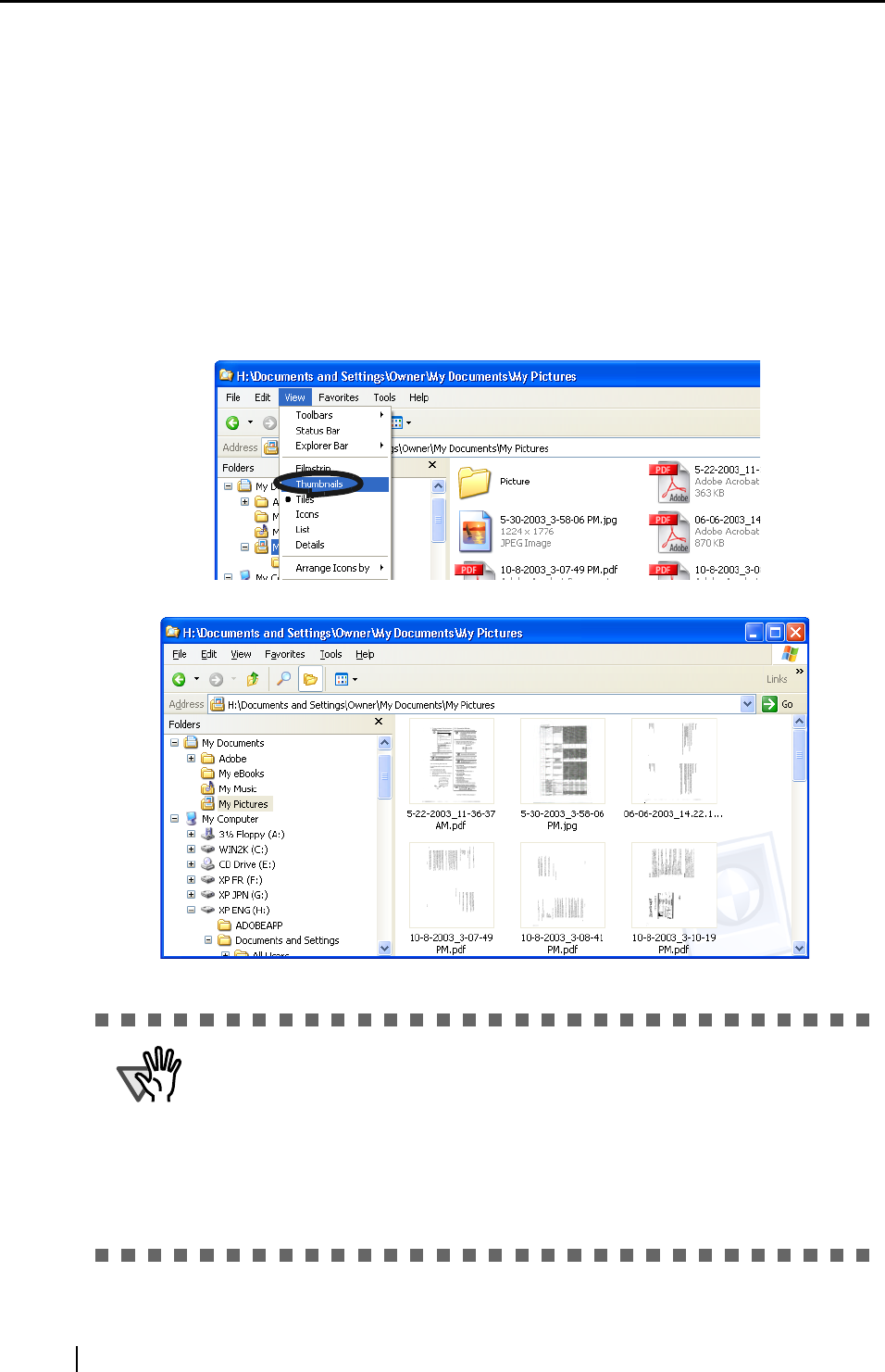 To view thumbnails (miniature) of PDF files, follow the procedure below.