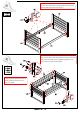 Align guardrail supports (#10) to the middle of the guardrails (#8,9), then secure by using screws (#F). Align guardrail support (#11) to the end of the guardrail (#9), then secure by using screws (#E). Insert metal dowels (#J) to the top of the lower guardrails (#1,2), then align upper bunk to the metal dowels (#J) of the lower bunk.