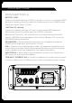 BUTTON DESCRIPTION ROTARY ENCODER Turn To adjust volume, move up or down a menu structure, or adjust a specific setting. Press To select a highlighted option, confirm a setting. Press to step through each zone for volume adjustment. Press and Hold For quick access to subwoofer level adjustment POWER Press to turn the unit ON/OFF. Press and Hold Press and hold for 10 seconds to ‘Reset’ the stereo. MENU Press to enter Menu System. Press to return to previous screen. Press and Hold To exit the menu system.