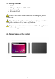 5.1 Package content • Tablet • Charger (adapter + USB cable) • User manual • Warranty Card If any of the above items is missing or damaged, please contact us. We advise to keep the container in case of any complaints. Keep the container out of reach of children. Dispose of container in accordance with local regulations when it is no longer needed. 6.
