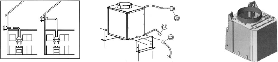 5.) Install (using 4 screws supplied) the provided pipe fitting (see Figure 3) above the hood motor in order to connect the fume outlet pipe of the hood