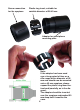 Screw connection for the eyepiece. Plastic ring insert, suitable for variable diameter of 38-43 mm Adapter for smartphone mounting plate Note: If the adapter has been used over a long period of time on a rifle scope with a diameter of 38 mm and should now be mounted onto a 43 mm eyepiece, please expand the plastic ring insert beforehand (carefully, as in the diagram). The adapter should be inserted over the eyepiece and pushed 50 mm deep until it reaches the cone.