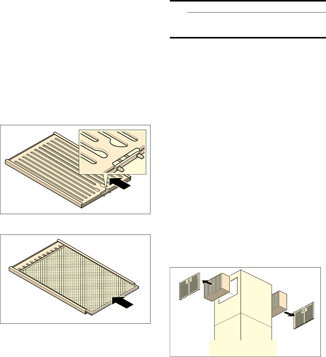 - 3 Mettre en place le filtre à graisse métallique sur le dessous de l'appareil, le verrouillage vers l'avant, et encliqueter le verrouillage.