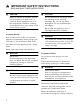 - Do not allow anyone to climb, stand, lean, sit, or hang on any part of an appliance, especially a door, warming drawer, or storage drawer. This can damage the appliance, and the unit may tip over, potentially causing severe injury.
