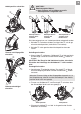 D Arbeitsposition einstellen : A C ACHTUNG ! Überlastung des Motors. V Beim Trimmen mit Laufrädern muss die Arbeitsposition 2 eingestellt sein. B Arbeitsposition 1 : Trimmen ohne Laufräder D Arbeitsposition 2 : Trimmen mit Laufräder Arbeitsposition 3 : Trimmen unter Hindernissen Die Holmneigung kann auf 3 Arbeitspositionen eingestellt werden. 1. Schieber B nach oben schieben und den Holm C auf die gewünschte Arbeitsposition (siehe Skala D einstellen). 2. Schieber lassen.