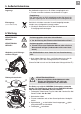 D GEFAHR ! Verletzung Dritter ! V Dritte aus dem Gefahrenbereich fernhalten. Prüfungen vor jeder Benutzung v Führen Sie vor jeder Benutzung eine Sichtprüfung des Trimmers durch. v Prüfen Sie, ob die Lüftungseinlässe frei sind. Benutzen Sie den Trimmer nicht, wenn Sicherheitsvorrichtungen (Druckschalter, Sicherheitsabdeckung) und / oder die Fadenspule beschädigt oder abgenutzt sind. v Setzen Sie nie Sicherheitsvorrichtungen außer Kraft. v Prüfen Sie das Schneidgut vor Arbeitsbeginn.