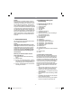FR • Limitez le temps d‘utilisation Prudence ! Risques résiduels Même en utilisant cet outil électrique conformément aux prescriptions, il reste toujours des risques résiduels. Les dangers suivants peuvent apparaître en rapport avec la construction et le modèle de cet outil électrique : 1. Lésions des poumons si aucun masque antipoussière adéquat n’est porté. 2. Déficience auditive si aucun casque anti-bruit approprié n’est porté.