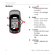 APPENDIX GPS Position Accuracy*: < 10 meters 50%, typical GPS Velocity Accuracy*: < 0.05 m/s Dynamics: Performs to specifications to 6 g’s Operating Temperature Range: -4° F to 140° F (-20° C to 60° C) Weight: 21 g Accuracy may be degraded by poor sensor contact, electrical interference, and receiver distance from transmitter. GSC10 Speed and Cadence Sensor Physical size: 2.0”W x 1.2”H x 0.9”D (not including adjustable speed sensing arm) *Accuracy depends on view of the sky. 99%–clear view; 95%–typical.