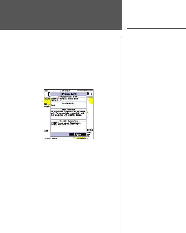 The first time you power up your new GPSMAP 172/172C, the receiver must be given an oppor-