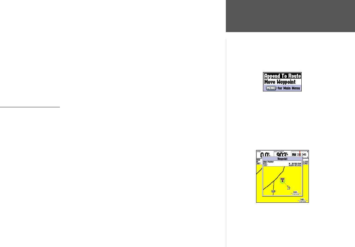 Waypoint Pages: Append To Route and Move Waypoint. (these menu options also appear on the