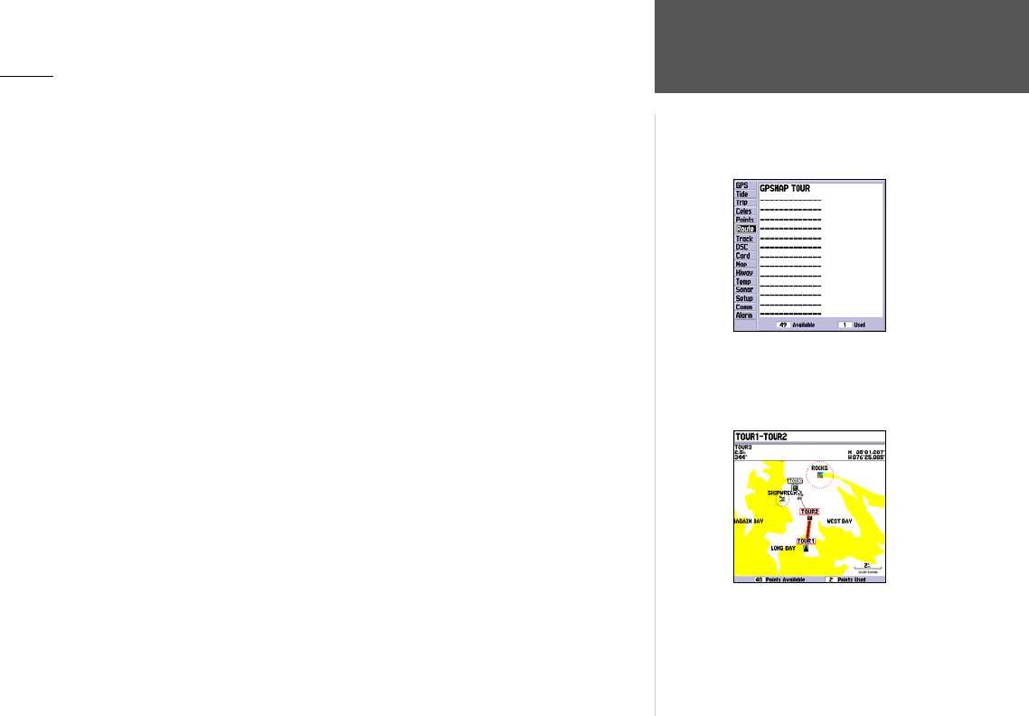 a list of the waypoints as you create, review, or modify the route. All of the GPSMAP 172/172C’s route