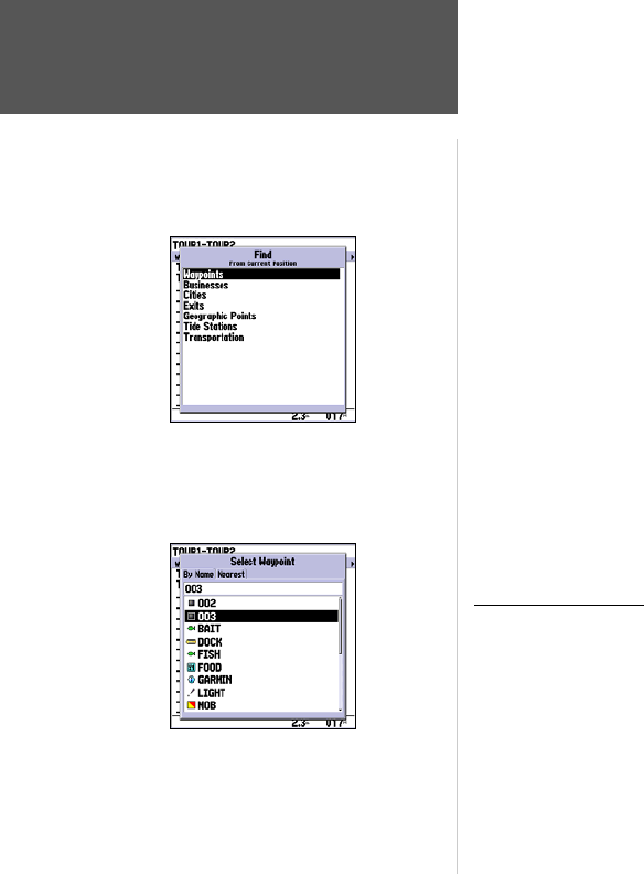 points, such as Cities, Tide Stations, etc. from this list.) Select a waypoint from either the “By Name”