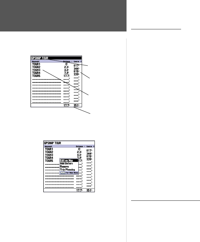By pressing MENU on the Route Review page, the following options are available: Edit on Map,