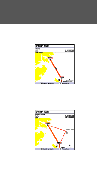 route line highlights and changes to a dotted line when the leg is selected) and press ENTER.
