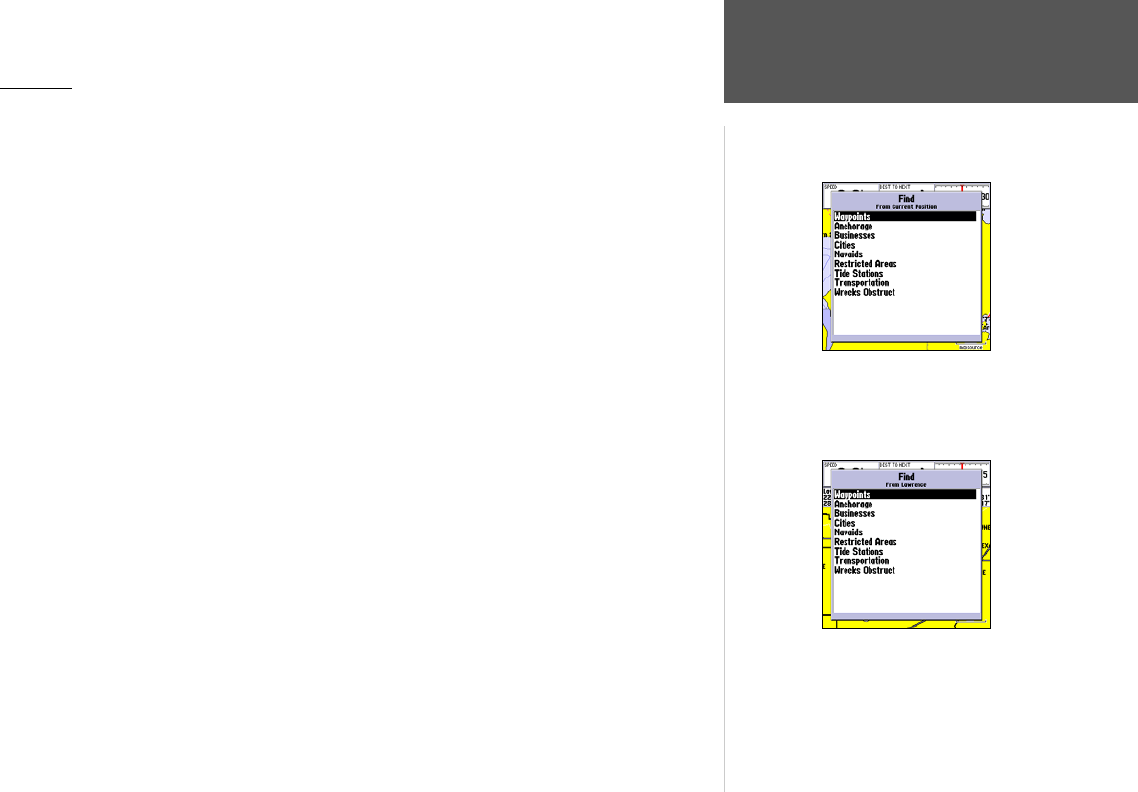 BlueChart or MapSource information loaded on a data card. Press the FIND key to search for items