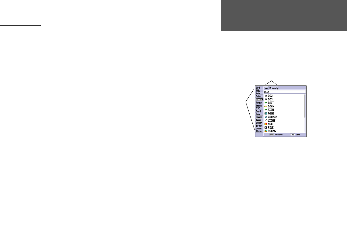 • Points – allows you to create, edit or delete waypoints. See pages 30.