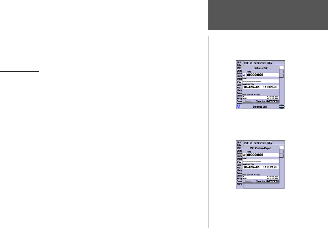 plays when a Distress Call is received. To notify you a Distress Call has been received, an alarm sounds
