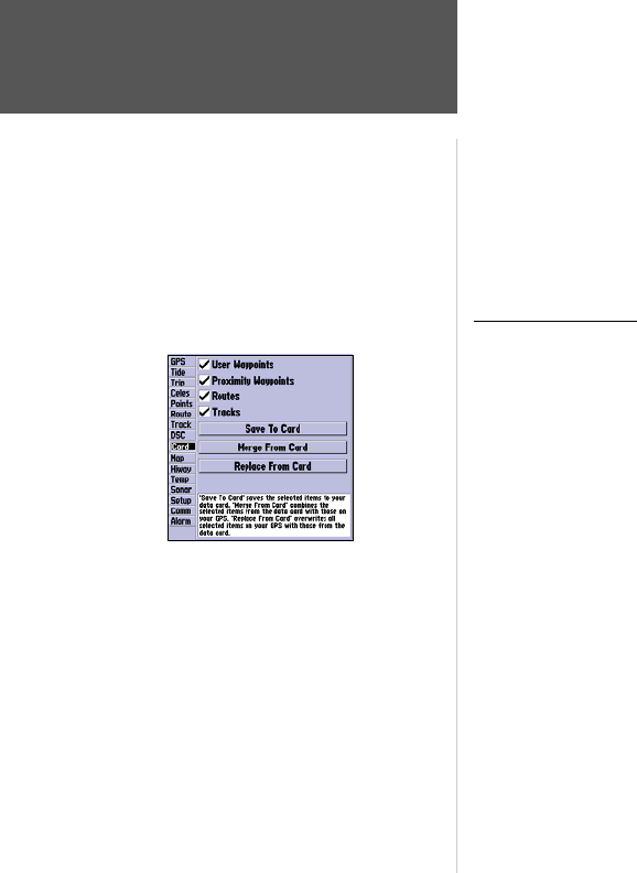 combine the selected items with those of your GPS. highlight ‘Replace From Card’ and press ENTER