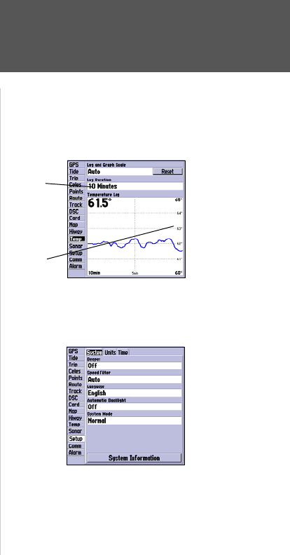 • Time Duration – sets how fast or slow the temperature log scrolls; the shorter the time duration,