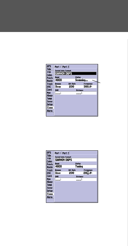 unit automatically scan for the DGPS beacon signal or you can enter the beacon frequency and bit rate